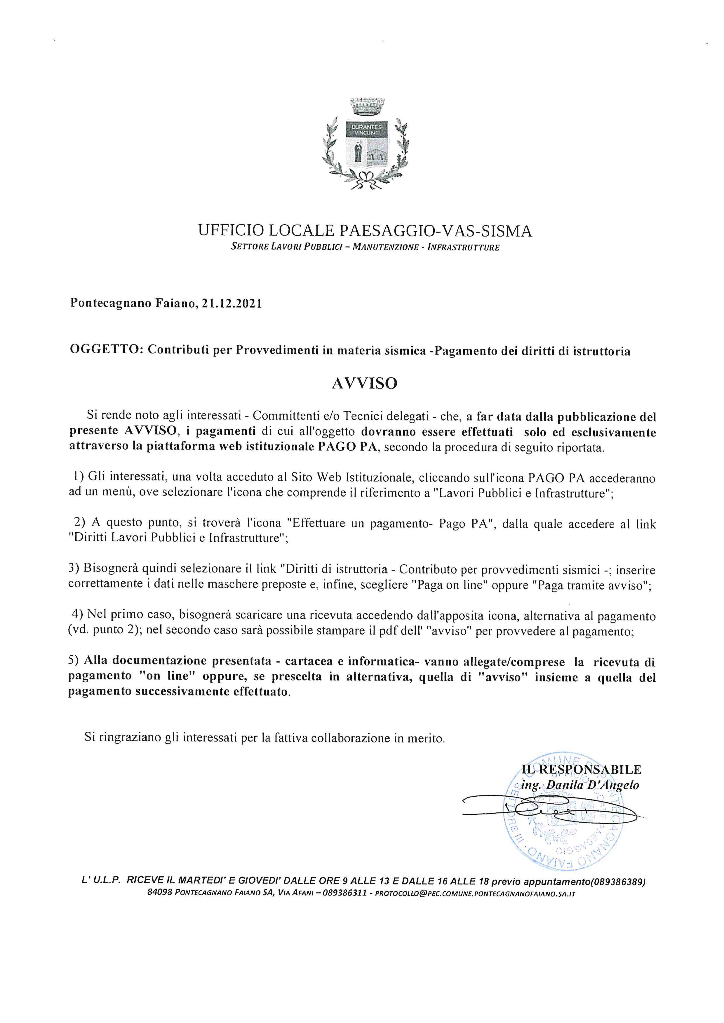 Ufficio Sisma - Avviso - Pagamenti contributi