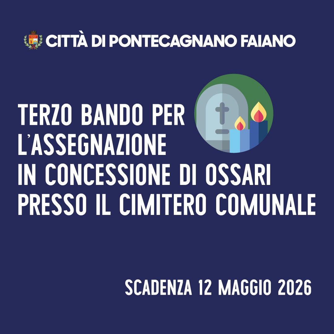 Pubblicato il bando pubblico per l'assegnazione in concessione di ossari nel Cimitero Comunale di Pontecagnano Faiano.